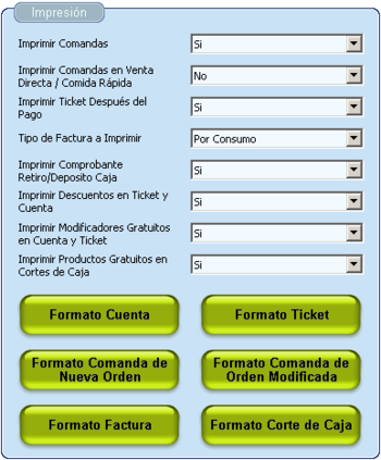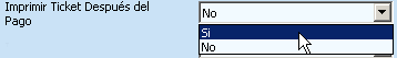 No- Seleccionar esta opción, los Ticket's no se imprimen automáticamente en las Terminales Comida Rápida y Punto de Venta.