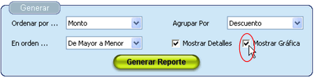 Si desea que se muestre la gráfica correspondiente de los descuentos aplicados en las ventas, de Clic en el cuadro que se señala en la siguiente imagen: