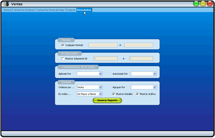 Sino selecciona ningún cajero se mostrarán en el reporte los descuentos aplicados.